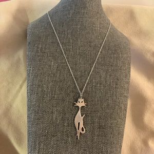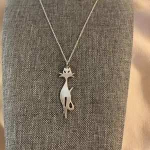 Sterling Silver 925 Signed Middle Century Modern Style Cat Pendant Necklace 18”