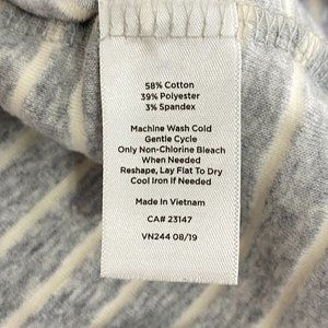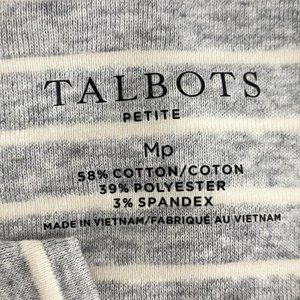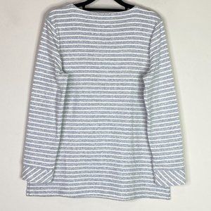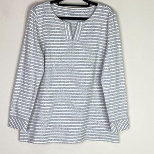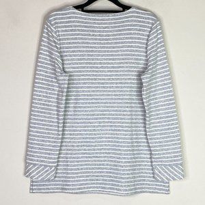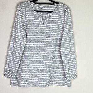 Talbots Grey Striped Notch Neck Top Women's Size Medium Petite
