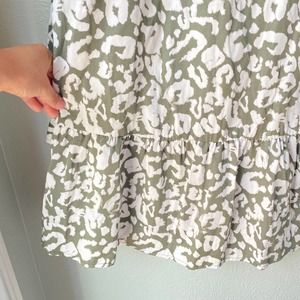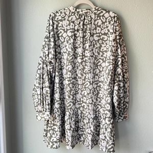 Elizabeth and James Green + White animal print long sleeve shirt dress, Size XL