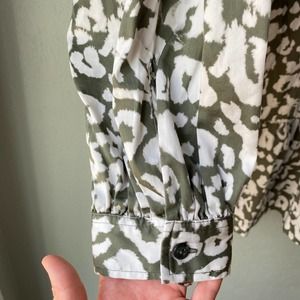 Green and White animal print long sleeve shirt dress, Cheetah print, jaguar print?
