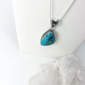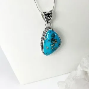 PERSIAN Turquoise Chunky Asymmetrical Gemstone Pendant Necklace Silver 925 New