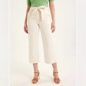 Loft Belted Wide Leg Cropped Pants Beige Size 2