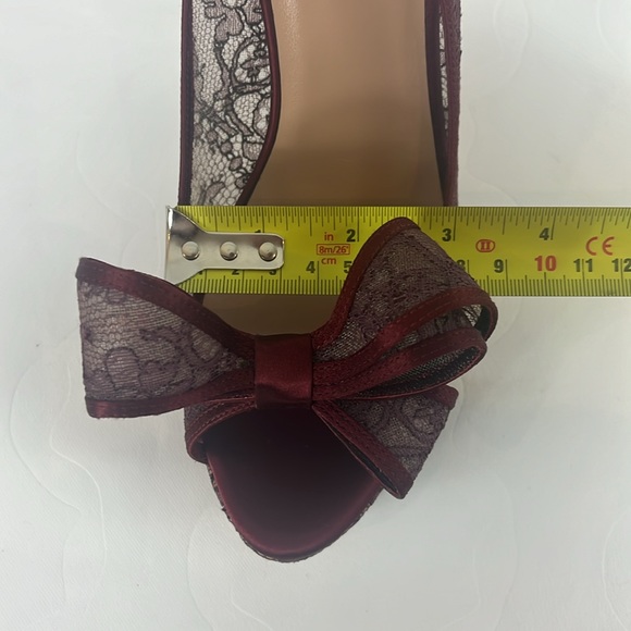 Valentino Couture Bow Lace Platform Pump Heels with Open Toe in Wine Colour.