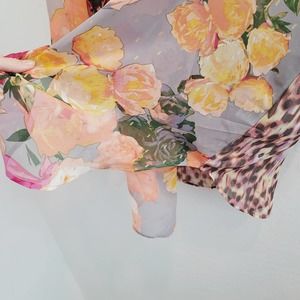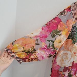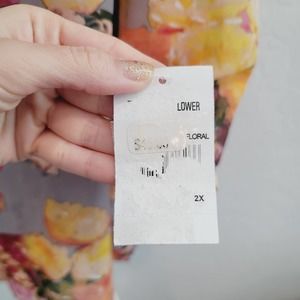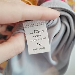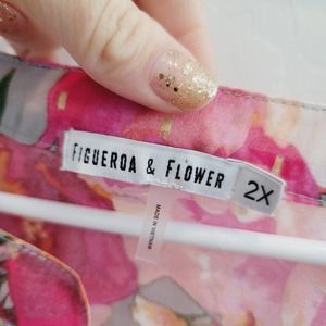 NWT Figueroa & Flower Floral & Animal Print 3/4 Sleeve Blouse Women's Size 2X. Button front and tie front! High low hem. Floral and animal print mixed prints! It includes a gray cami.