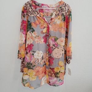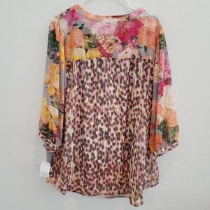 NWT Figueroa & Flower Floral & Animal Print 3/4 Sleeve Blouse Women's Size 2X