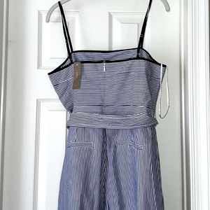 Top Hem around Chest has also a Navy Blue Hem Line. Back Zipper Closure. Underlined.