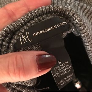 INC silver Shimmer belted turtleneck tunic sweater dress Sm