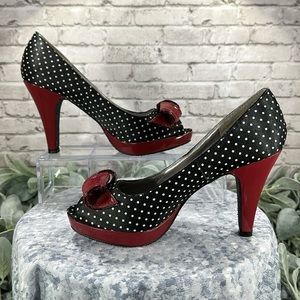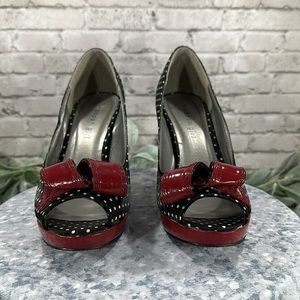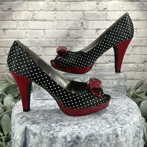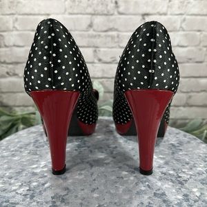 Madden Girl Kiarra Polka Dot Peep Toe Red Patent Retro Heels Women’s 8M❤️VGUC❤️