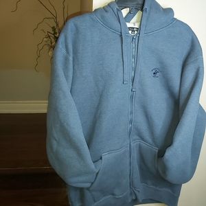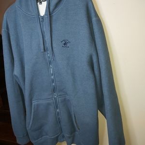 Polo Club fleece sweater, size L, blue. Fully zipped, long sleeved, double pockets, white fleece lining, hoodie. Logo on left chest.