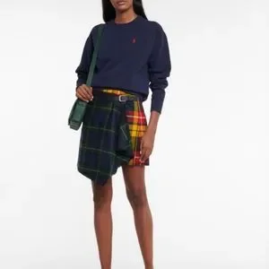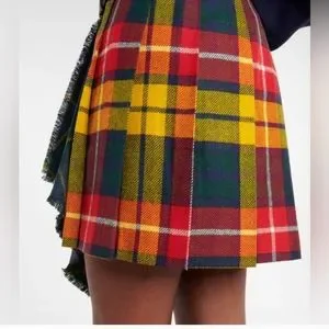 Polo Ralph Lauren Women's 16 wool Plaid Pleated Kilt Leather Buckle Skirt New. 36 inch waist. 22 inches long.