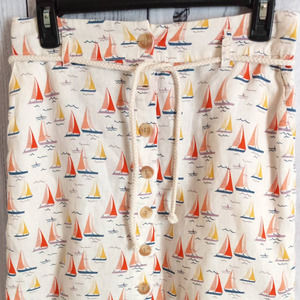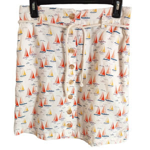 Cynthia Rowley | Ivory 100% Linen Retro Sailboat Graphic Button-Front Skirt