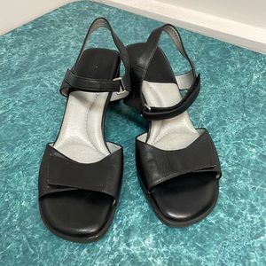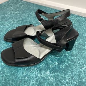 Beautifeel leather upper and black leather and gray leather insole; 2 inch heel with Velcro adjustable straps; women’s size 42/women’s size 10: used in good condition