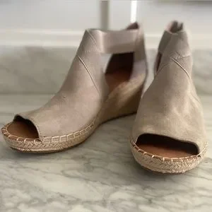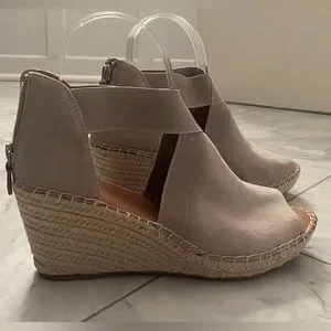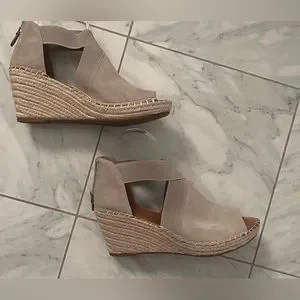 Is it Summer yet? Gorgeous Kenneth Cole Espadrille Wedge with Elastic Straps and Zipper heel. New in Box. Mushroom color. Suede Upper. 8 1/2 M.