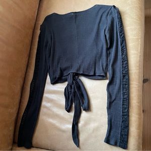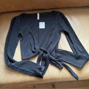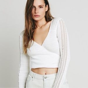 Brand new w tags Free People ribbed crop wrap top w stunning sheer mesh detail on sleeves and thumb holes. Versatile & gorgeous top! Size Small. Stock images shown of white top for reference. This listing is for the top in black.