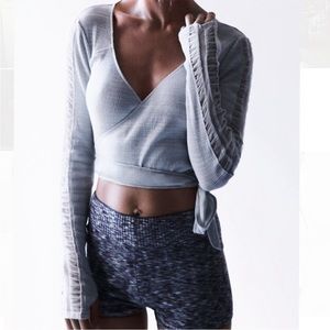 NWT Free People Nevermind Crop Wrap Top thumb holes mesh ballet We the Free