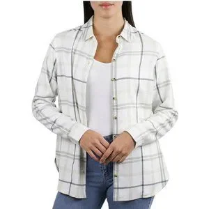 NWoT Jachs Girlfriend Women Button Down Super Soft Flannel Sz L White $60 GG419