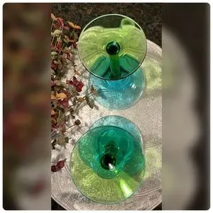 Pair of Hand Blown Blue & Green Margarita Glasses.