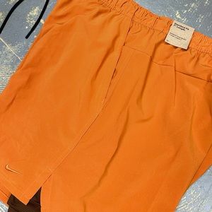 I’m selling a Brand New with Tags pair of Nike Unlimited 7” Versatile Dri-Fit Men’s 2 in 1 Compression lined Running Shorts In Orange with Brown compression Shorts and an embroidered Nike check! Features Drawstring, Compression Shorts lining and side pockets.