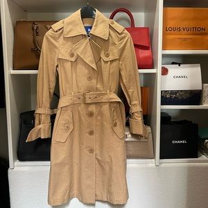 Classic Burberry London-Blue Label Coat. In excellent condition. Never been worn.size 38