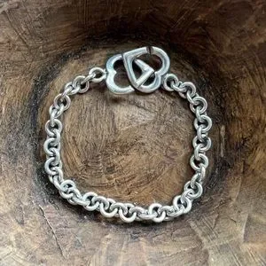 Sweet Vintage sterling silver round link bracelet with heart toggle clasp, links are all soldered together, weighs 24.73 grams