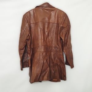 Beautiful 1970s Vintage Chestnut Brown Leather Jacket. Fully lined. 3 button closure. 2 front pockets. Size small.