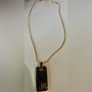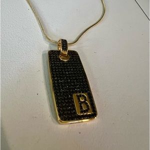 Beautiful snake, chain, yellow and color with pendant sparkling with black spinels. Letter B initial.