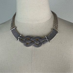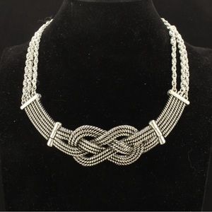 Vintage rope weave metal hinged silver toned statement necklace in excellent pre owned condition. Adjustable chain.