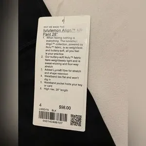 NWT Lululemon Align High Rise Pants leggings 28” in Black Size 4