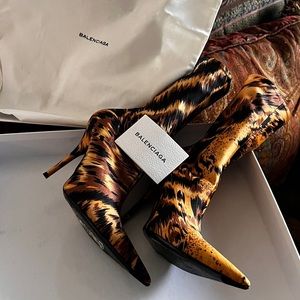 Balenciaga Knife Stretch Jersey Ankle Boots. Tan, brown and black. Pull on