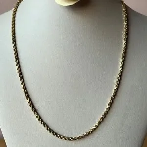 14K YELLOW GOLD VINTAGE DIAMOND CUT ROPE CHAIN NECKLACE UNISEX APROX. 18” LONG