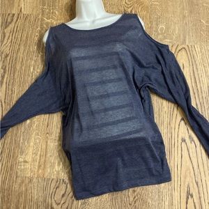 Flirty and fun cold-shoulder top has a striped pattern with fitted waist and long sleeves. Hard to do it justice with photos. From Allen B. by Allen Schwartz, size small.