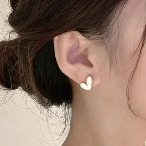 New Oil Drop Heart Shape Stud Earrings