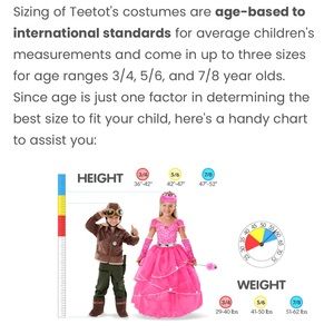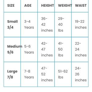- sizing for child measurements height 47”-52” & weight 51-62 lbs