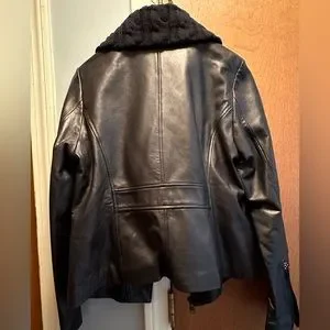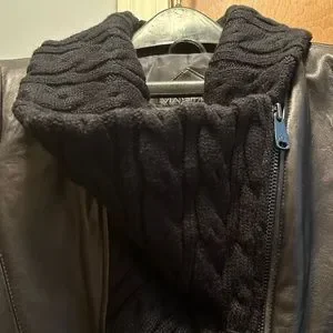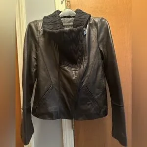 Via Spiga Women’s lamb leather black jacket with black knit. Size medium