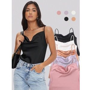 Black Glamorous Cowl Neck Spaghetti Straps Camisole Top
