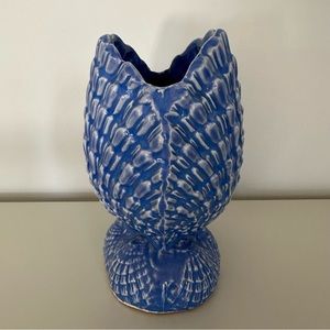 Anthropologie Vintage Hollywood Regency Coastal Shell Vase Cachepot Blue Glaze
