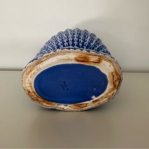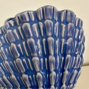 Anthropologie vintage shell vase, planter, or cachepot. Gorgeous blue glazed small planter. Measures 4.5" long by 3.25" wide at base, 6" tall, 6.5" wide at widest point. Opening measures 4" long by 2.25" wide. A great Hollywood Regency coastal chic mid-century style. Made in Japan. In excellent condition. No trades; bundle discount available.