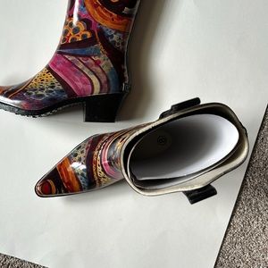 Corkys Rodeo Boots - Red & Black Paisley. Cowboy boot style - with chunky heel and rubber sole.