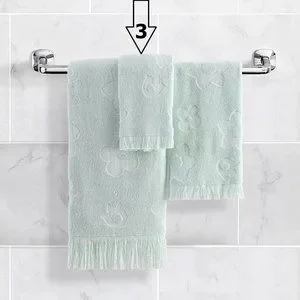 3 brand new Wild Sage™ Florence Embossed Flowers 13x13-inch 100% Cotton Washcloths with Fringe. NOTE: The manufacturer's name for the color is Mint .... it is a springtime light green hue. Machine washable. Condition is brand new with retail tags ... UPC 042075610906.