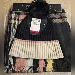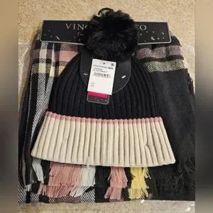 Vince Camuto Plaid Blanket Scarf & Beanie Set