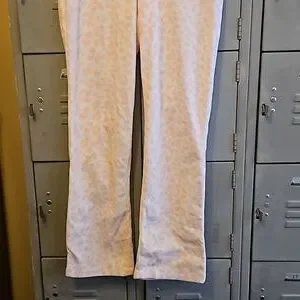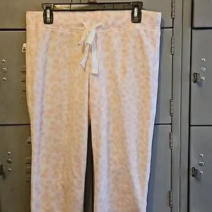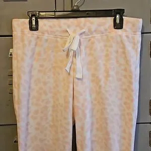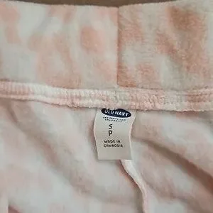 super soft polyester fleece pants. elastic waistband with drawstring. no pockets. size small. approx. waist 16". inseam 31". good condition.