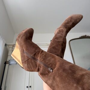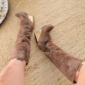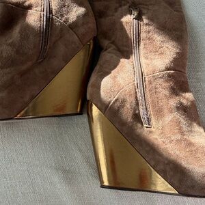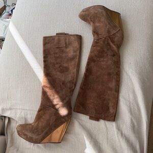 Free People NWT Cognac Suede & Gold Wedge platform Knee High Boot Sexy Chic LOVE