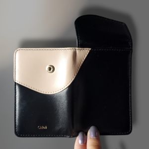 Sophisticated multi-layered bi-color card wallet in luxurious, shiny calfskin with the Chloe's signature playful oversized scalloped edges.