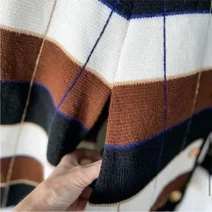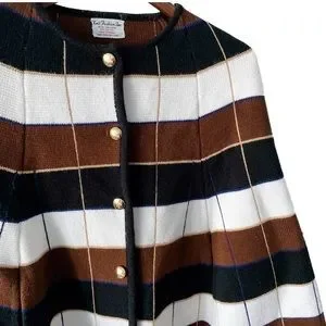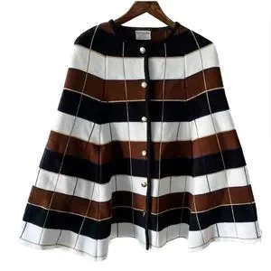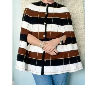 Vintage Plaid Stripe Button Down Knit Cape/Poncho