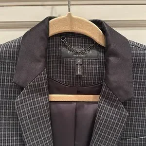 Rag & Bone grey and black plaid blazer with satin collar. Size 4; in excellent condition.