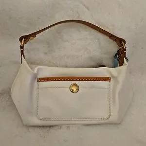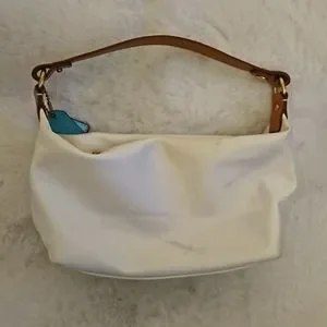 white with sky blue interior inside. cute and stylish. has markings on bottom of the purse.