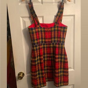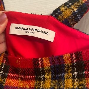 Amanda Uprichard Red Scotch Plaid Makenna Mini Dress S. Fully lined. Woven fabric with boucle detail, Hidden back zipper closure. 42% acrylic, 19% poly, 18% wool, 12% virgin wool, 5% nylon, 4% other fibers. pit to pit 17", waist is 14” across, length 34*