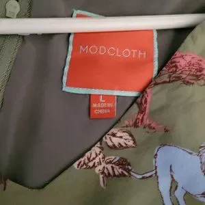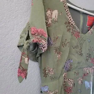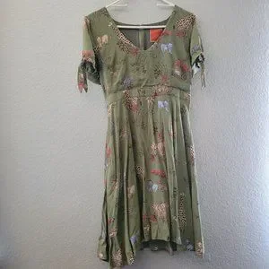 Modcloth Womens Green Swing Dress Size Large Safari Animal Print Novelty Short