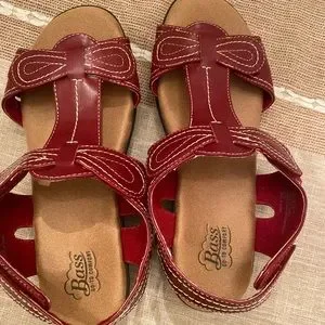 BASS UEC Womens Sandals Size 9 Red Tabitha Comfort Sandals Black Sole