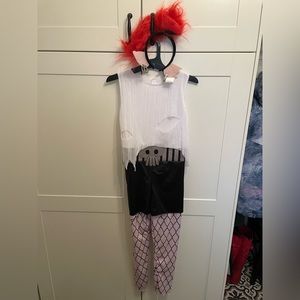 Very gently used! Was worn for dress up around our house a few times. There are a couple of very small snags by the closure caused by the Velcro. Size medium